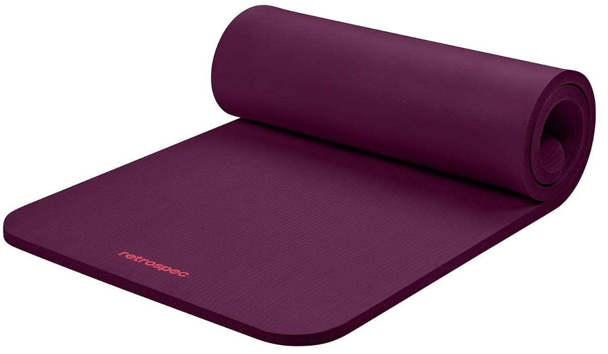 Retrospec Solana – Tapete para Pilates de 1 pulg de grosor con correa de nailon, unisex, antideslizante, para estiramiento, ejercicios en el suelo y entrenamiento físico